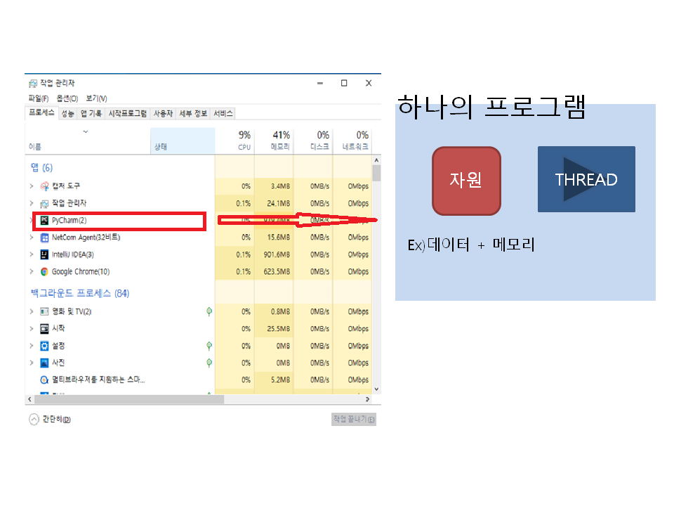 작업 관리자에서 프로세스를 확인 할 수 있다.