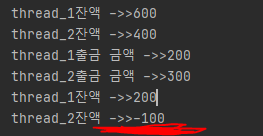 System.out.println(thread.getName() + "잔액 ->>" + balance);